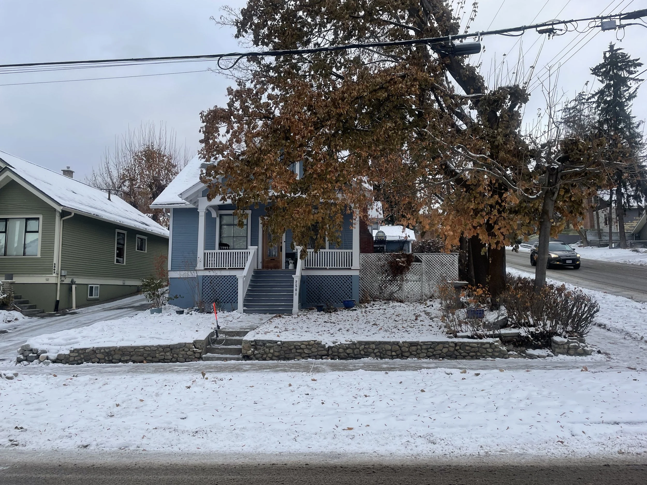 This project feels a bit of a combination of the previous two. Entry to the home and size of job is similar to the East Hill Heritage House, but we’ve added a similar contemporary feel to this one vs a traditional landscape you might expect for this area of town.